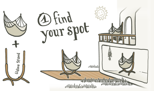 Si tu souhaites utiliser notre support Udine pour suspendre ton fauteuil suspendu, prévois une surface d'environ 110 x 110 cm et une hauteur de 163 cm. Veille également à maintenir une distance minimale de 75 cm par rapport aux murs, aux meubles et aux objets environnants.