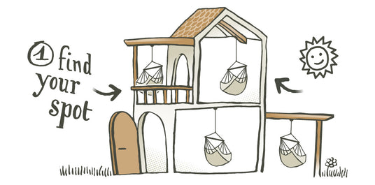 Avant de te lancer dans l'installation de tes fixations, pose-toi les bonnes questions: dans quel coin de la pièce vas-tu exactement accrocher ton fauteuil suspendu ? Prends soin de vérifier que la barre d'écartement du fauteuil suspendu ne touche pas les meubles ou les murs lorsqu'elle tourne sur elle-même.