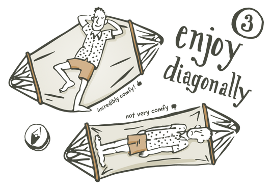 Tu peux t'allonger dans nos hamacs à barres colombiens aussi bien en longueur qu'en diagonale. L'étoffe du hamac reste complètement déployée dans les deux positions, pour te garantir une détente complète en toutes circonstances.