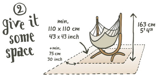 Tout d'abord, assure-toi que la surface soit plane et ne soit pas humide, pour éviter que ton support de hamac ne soit bancal ou ne s'enfonce dans la terre. Facile à déplacer, le support de hamac te permet de choisir entre ombre et soleil pour te relaxer dans ton jardin.