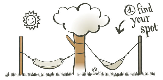Avant de te lancer fiévreusement dans l'installation de ton hamac, nous te recommandons tout d'abord de choisir soigneusement un endroit sympa pour te détendre. Et oui ! Le compteur de la zenitude ne pourra atteindre son paroxysme que si tu installes ton hamac entre deux arbres solides, éloignés de 3 à 5 mètres l'un de l'autre – suivant la nature de ton hamac. Autre option : tu peux installer ton hamac également entre deux piliers ou deux poutres.